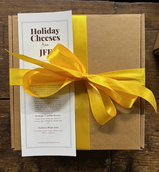 THREE curated gift boxes sure to please the locavore/cheese lover on your list! Includes tasting notes, a (local) flavored honey, and small-batch jam to compliment your cheeses. Looking to build your own box? Pick "Build My Own Box" and leave your request in the farmer comments!
