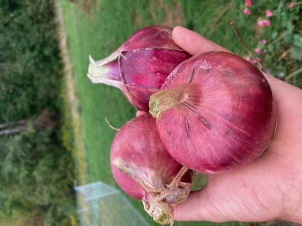 “Red rock” red onion is a short storing onion (less than 3 months), great sliced, raw or cooked. A quart container...