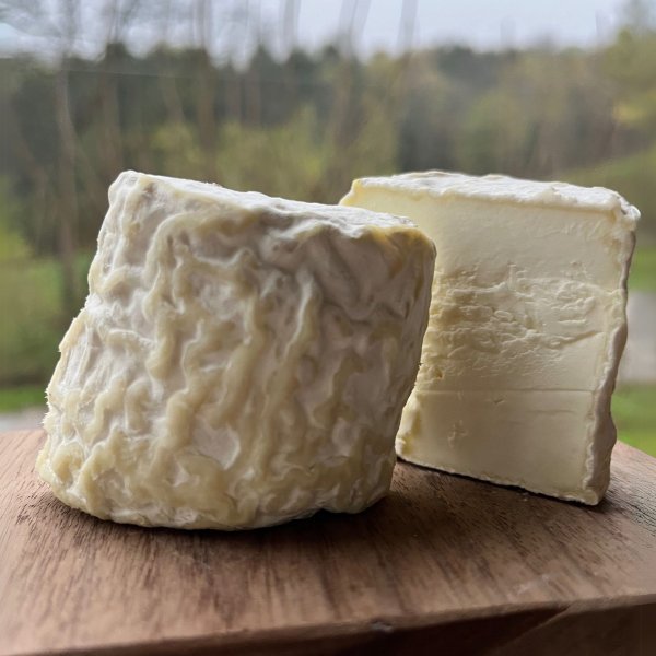 HELP US TEST SOME NEW CHEESES! Pasteurized goat's milk, aged 3 weeks. Geotrichum candidum rind, in the...