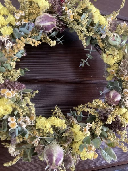 Locally harvested grapevine wreaths, loaded with all our flowers (grown from seed, dried with love). Every listing is unique to picture. This wreath measures approximately 8 inches in diameter